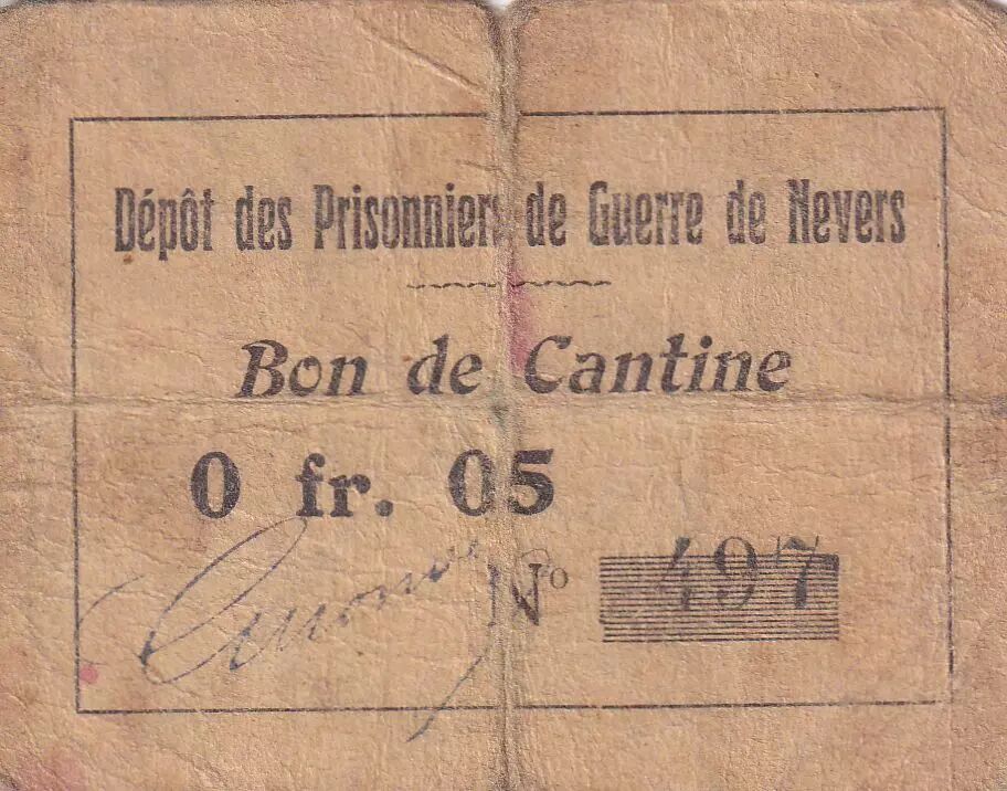 Billet France 5 Centimes - Bon de cantine - Dépôt des prisonniers de guerre de Nevers