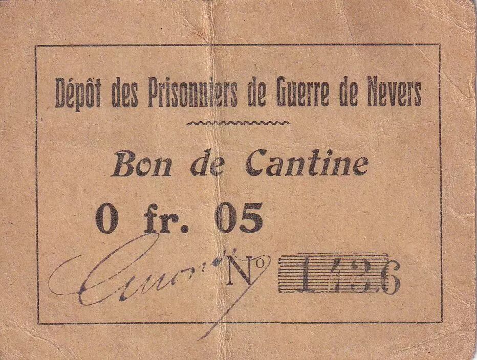 Home > French Banknotes > France 5 Centimes - Bon de cantine - Dépôt des prisonniers de guerre de Nevers