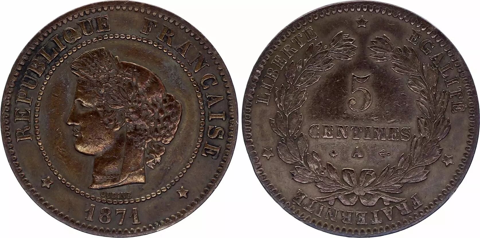 Home > > France 5 Centimes Ceres - 1871 A Paris - Fine - Cleaned