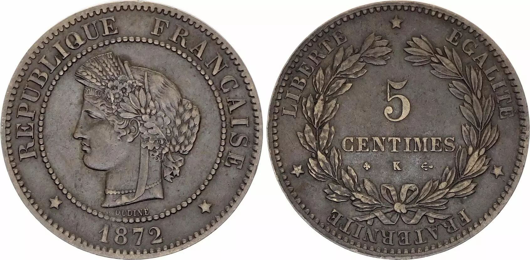 Pièce France 5 Centimes, Céres - 1872 petit K