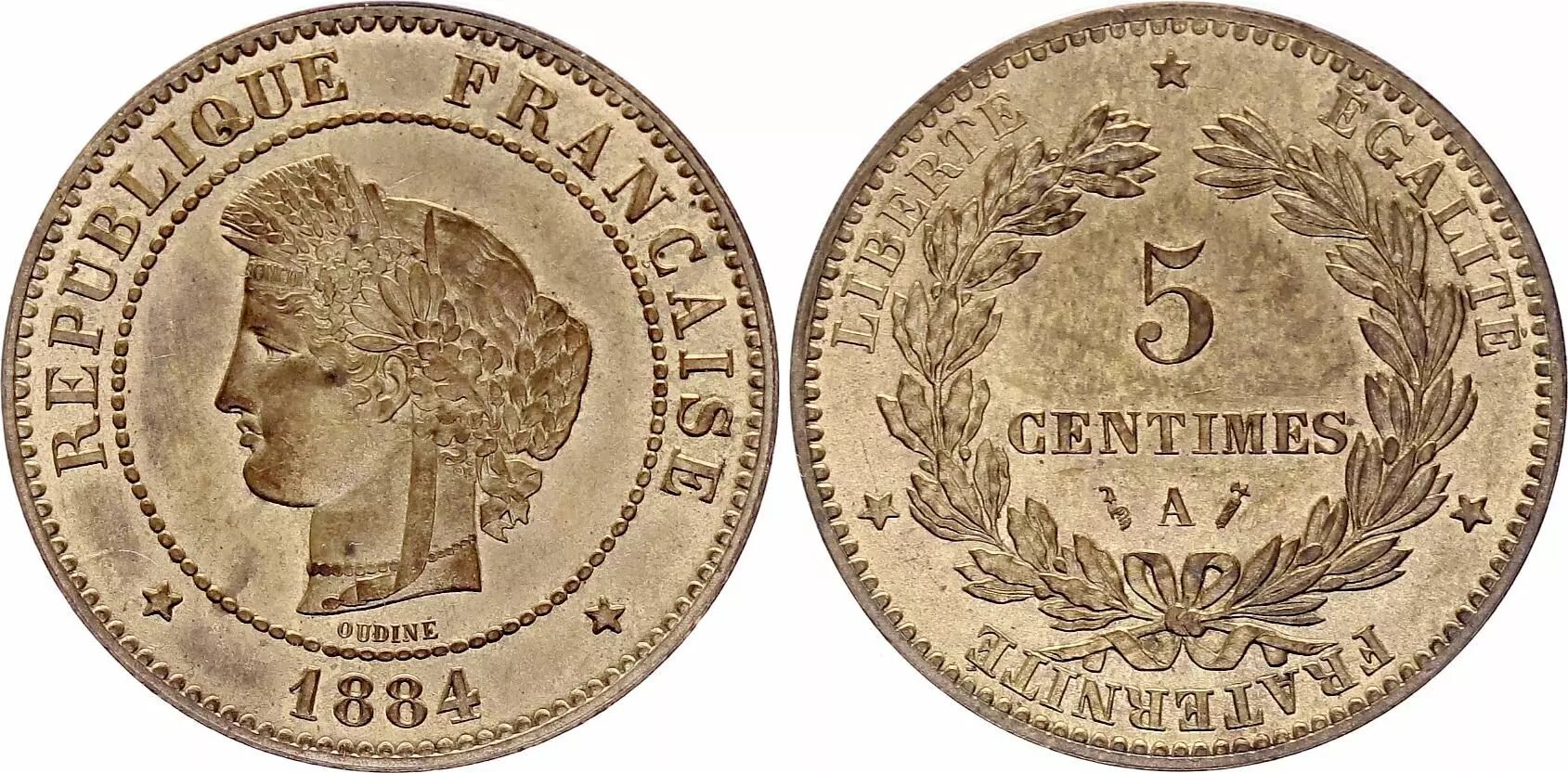 Pièce France 5 Centimes, Céres - 1884 A