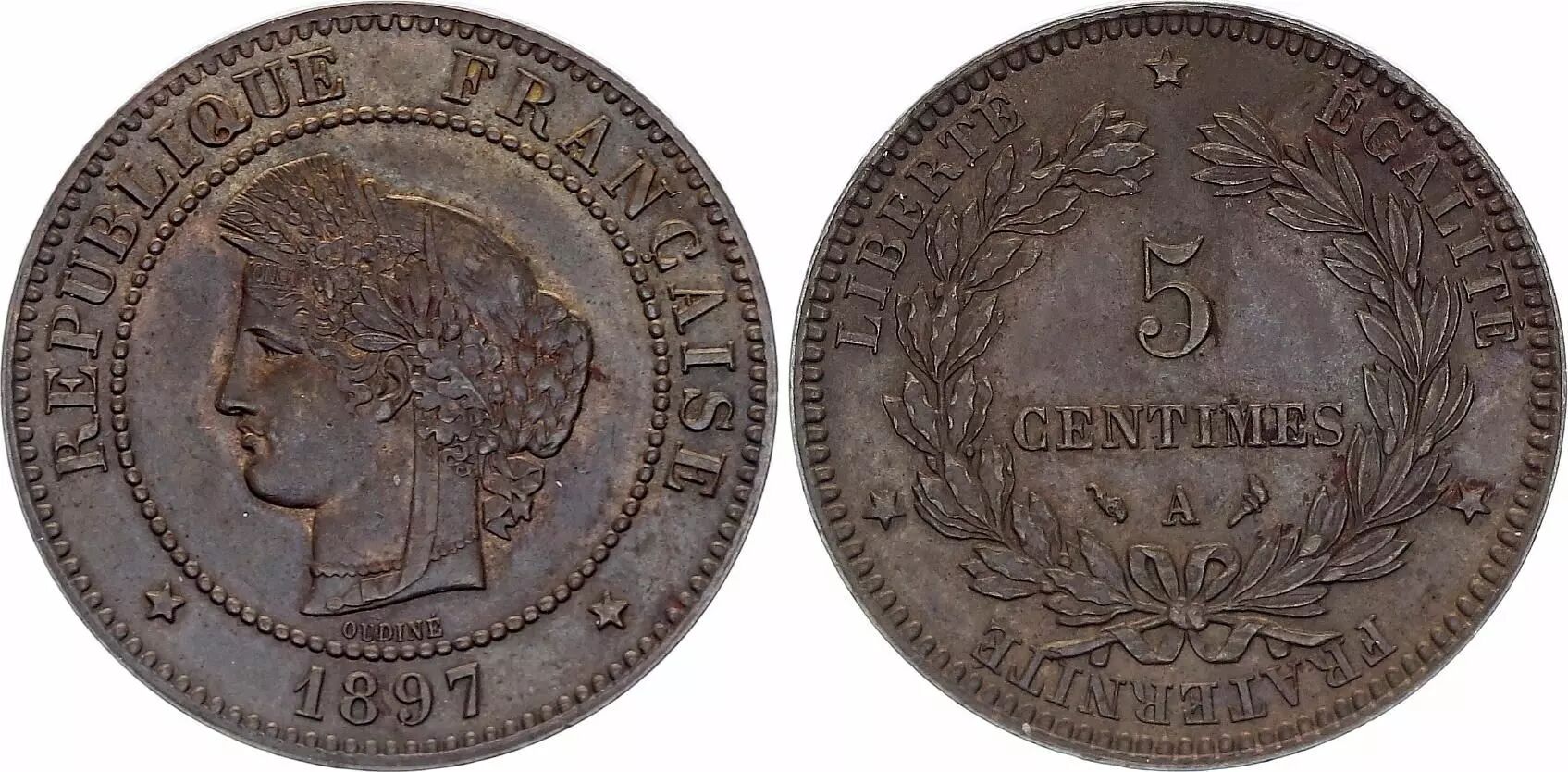 Home > > France 5 Centimes Ceres - Third Republic - 1897 Torch A Paris