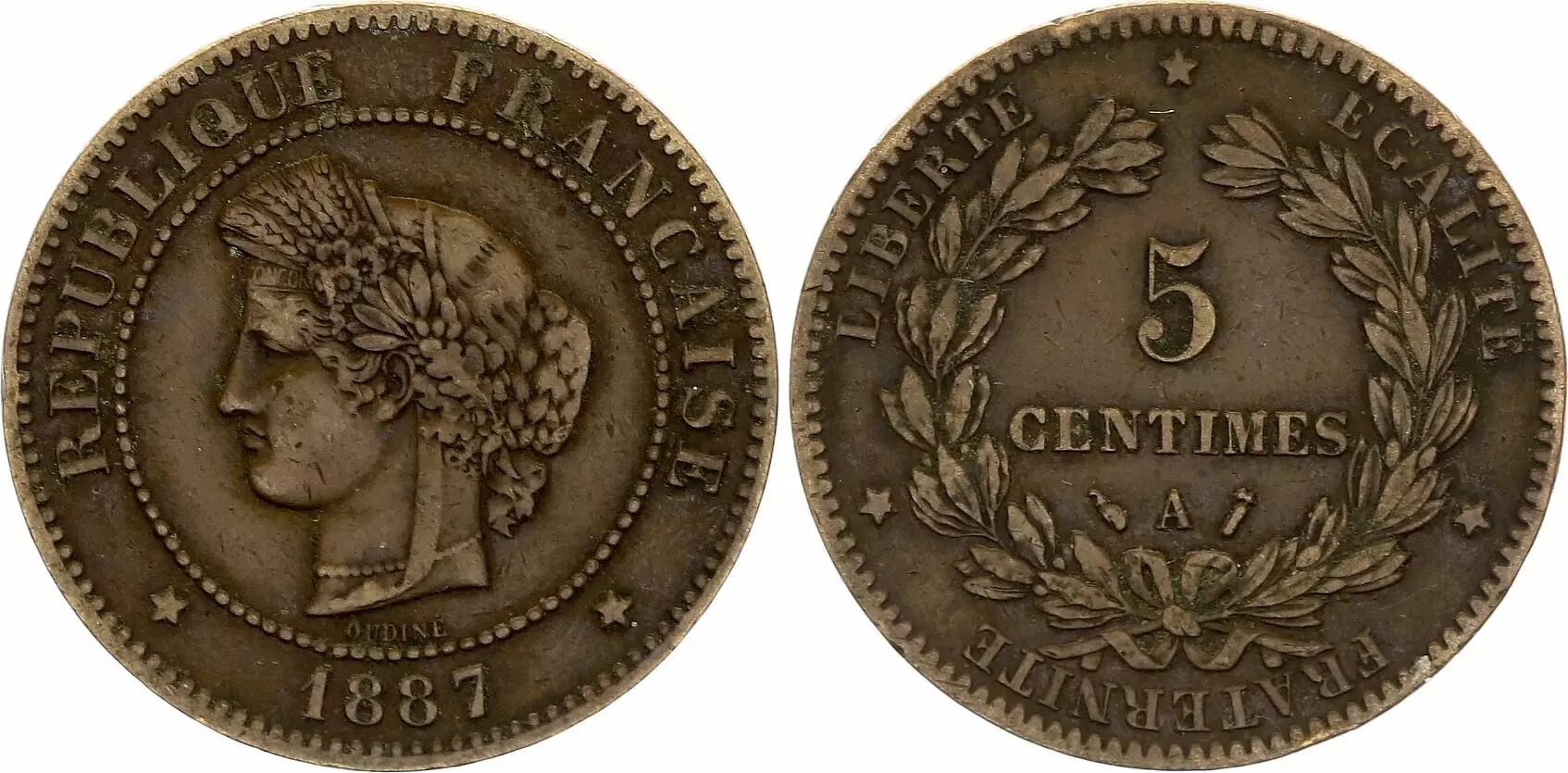 Accueil > Archivage > France 5 Centimes Cérès - Troisième République- 1887 A Paris