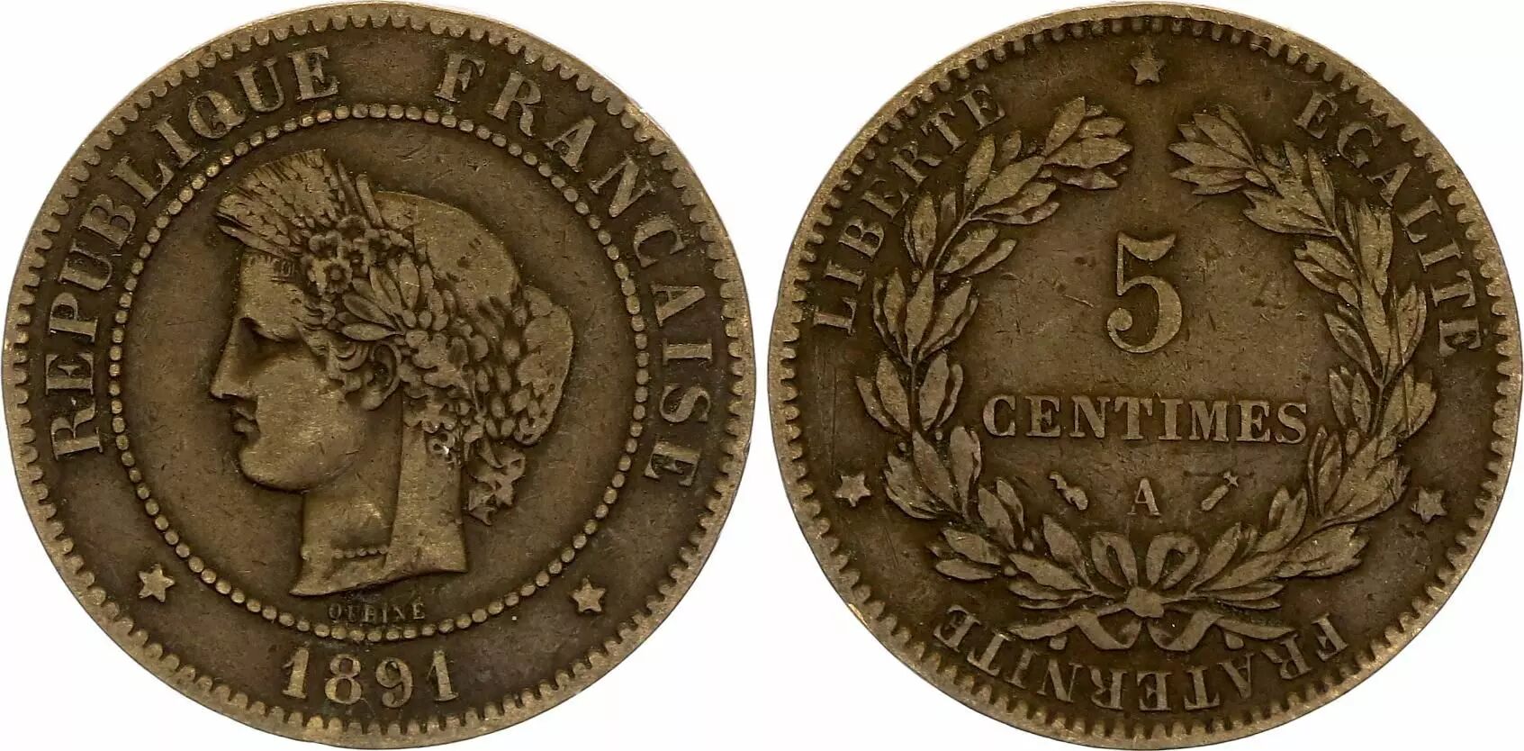 Accueil > Archivage > France 5 Centimes Cérès - Troisième République - 1891 A Paris