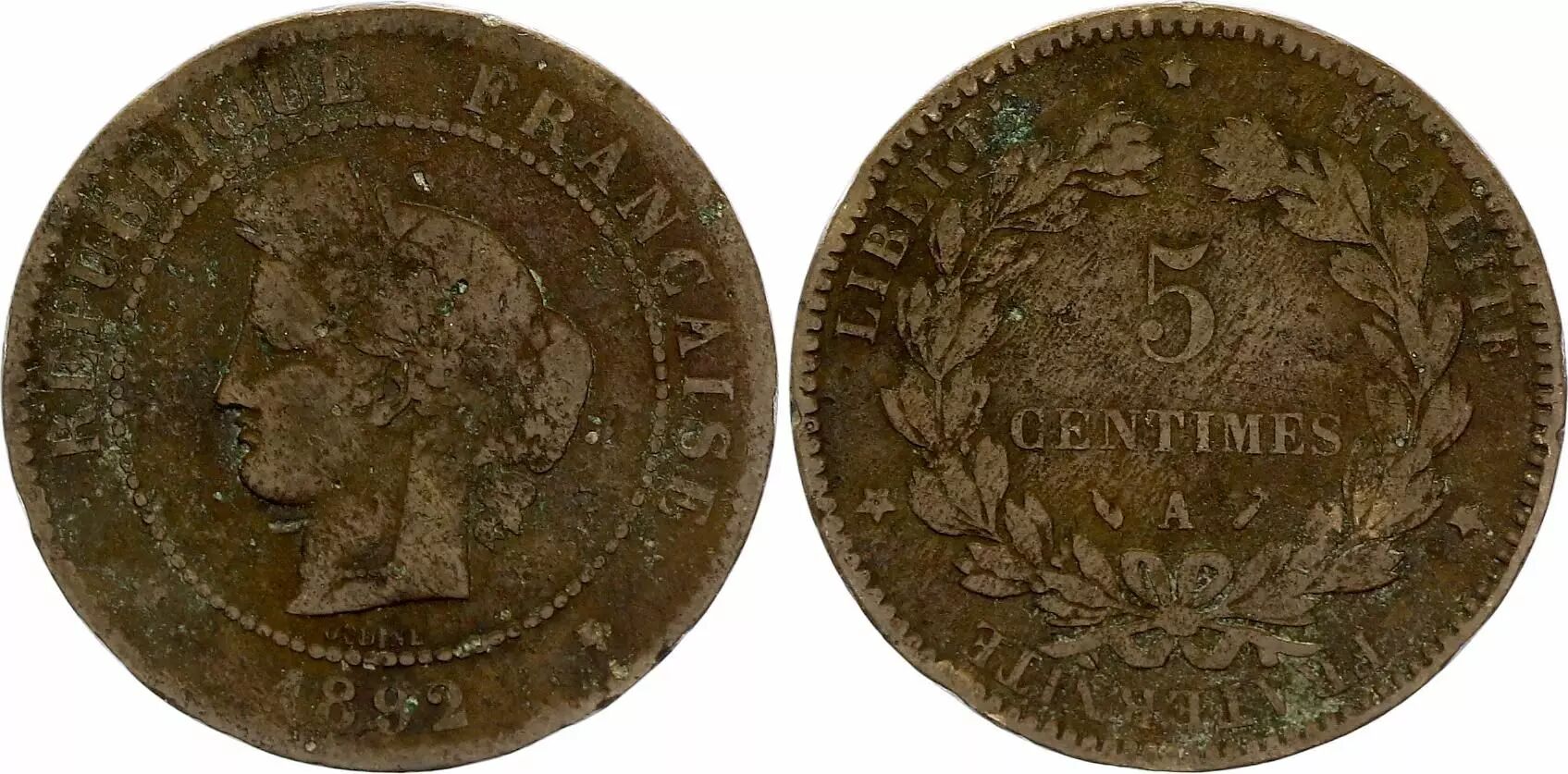 Accueil > Archivage > France 5 Centimes Cérès - Troisième République - 1892 A Paris