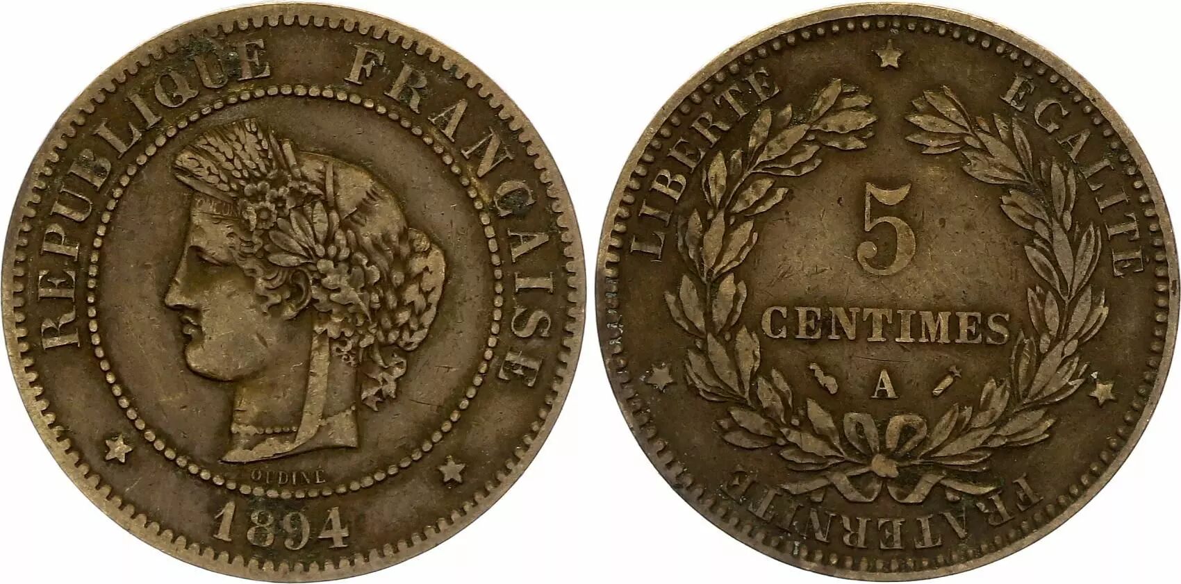 Accueil > Archivage > France 5 Centimes Cérès - Troisième République - 1894 A Paris