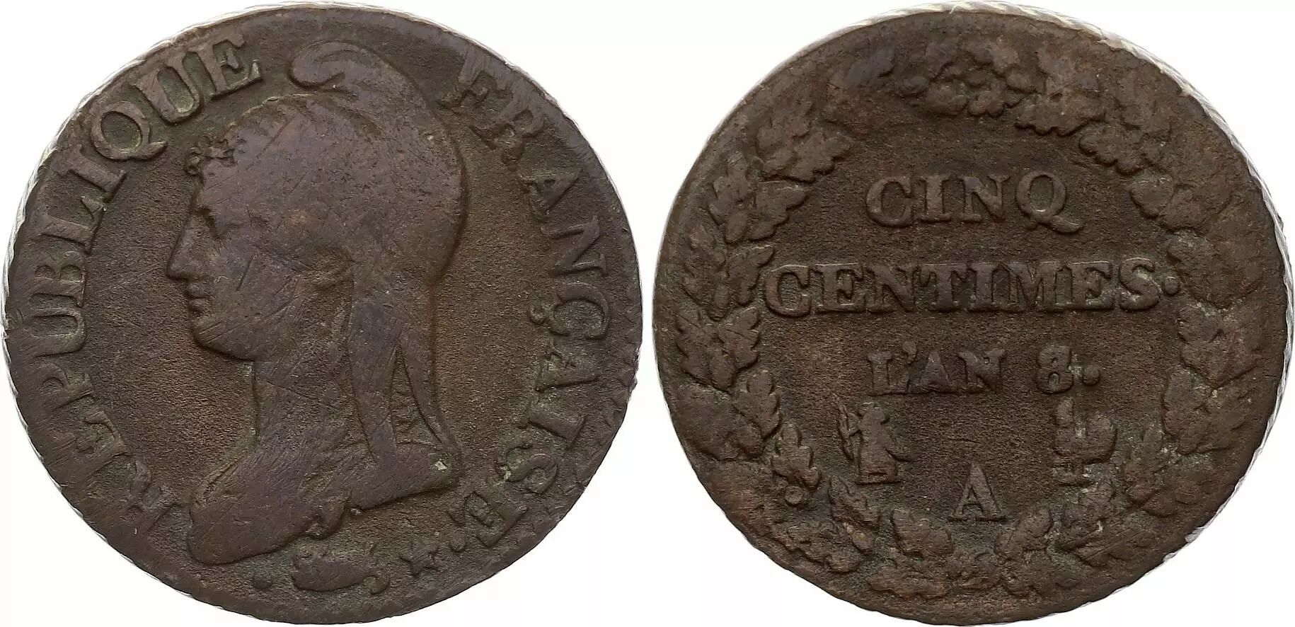 Home > > France 5 Centimes Dupré - An8/5 (1799-1800)- A Paris