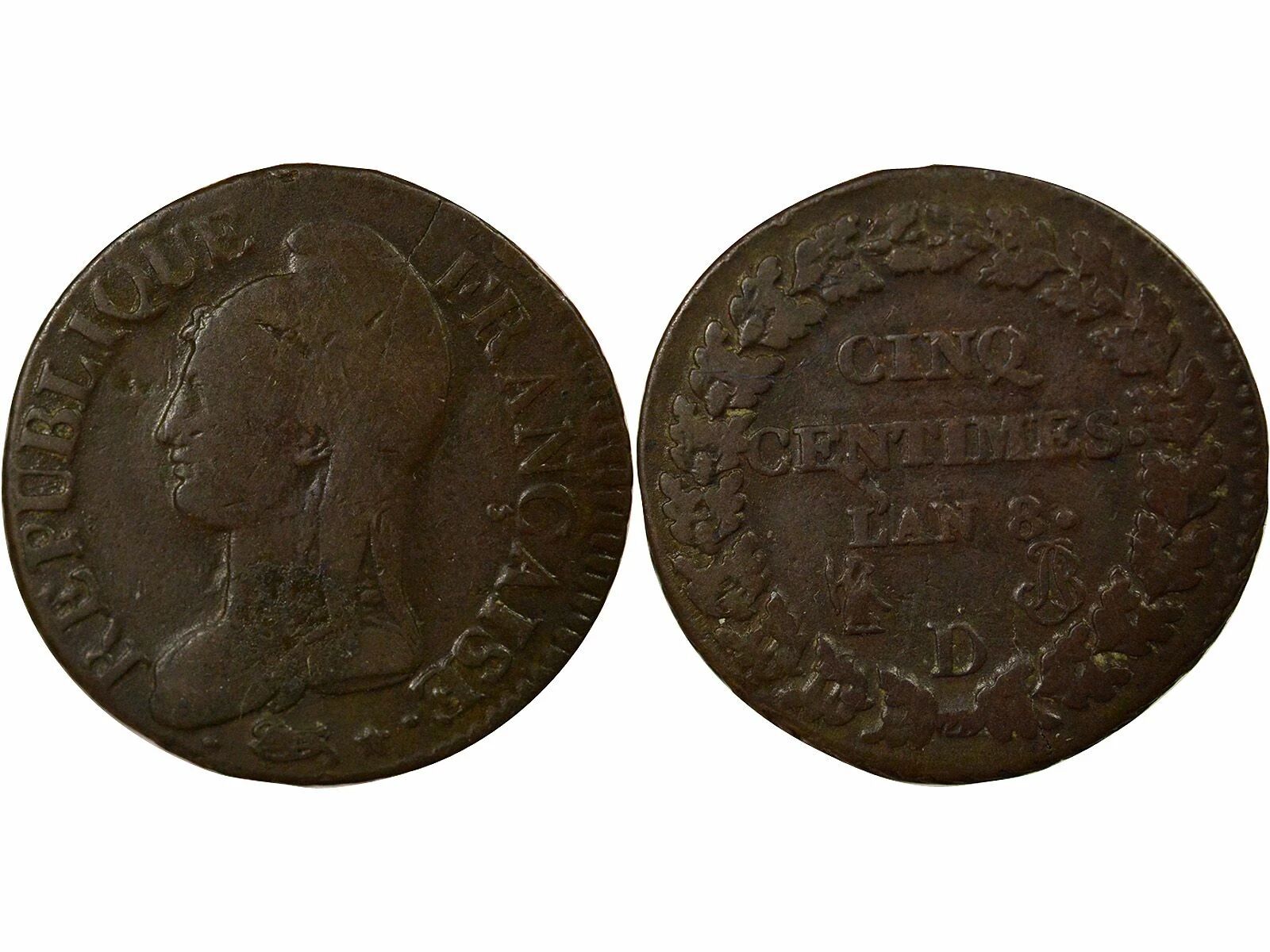 Coin France 5 Centimes, Dupré, Big diameter - Year 8 D Lyon