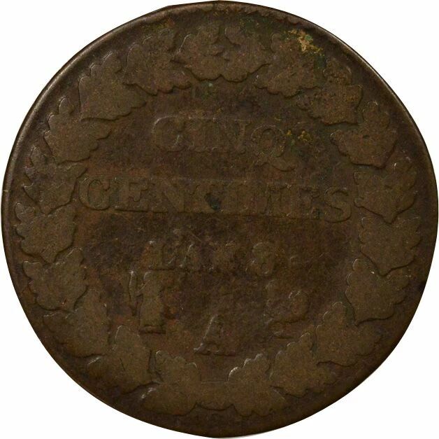 Pièce France 5 Centimes, Dupré, Grand module - An 8 A Paris