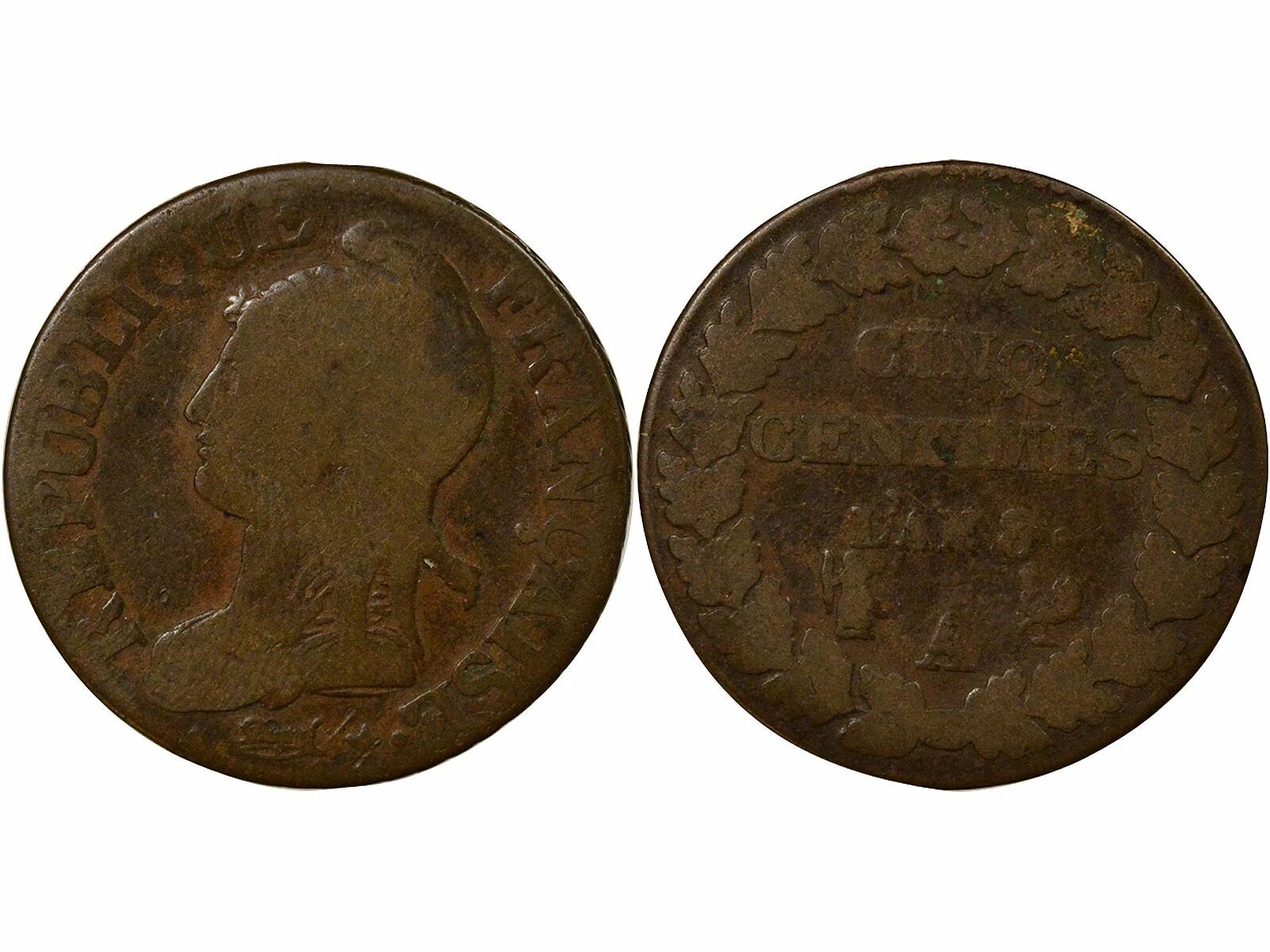 Home > French coins (470 à 2002) > Modern Currencies (1789 to 2002) > 5 Centimes > France 5 Centimes, Dupré, Large Diameter - Year 8 A Paris