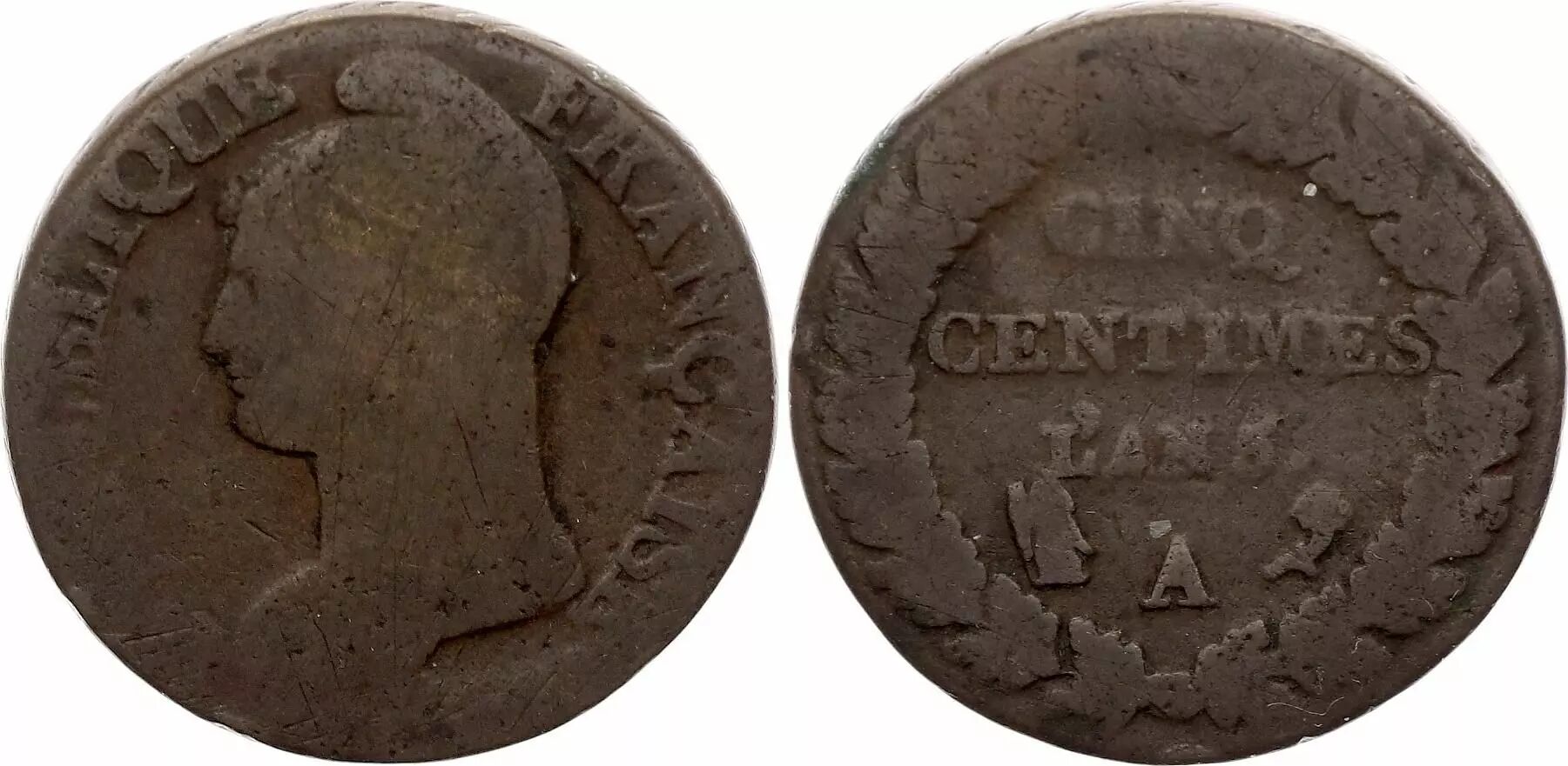 Home > > France 5 Centimes Dupre - Liberty head - An 5 A Paris
