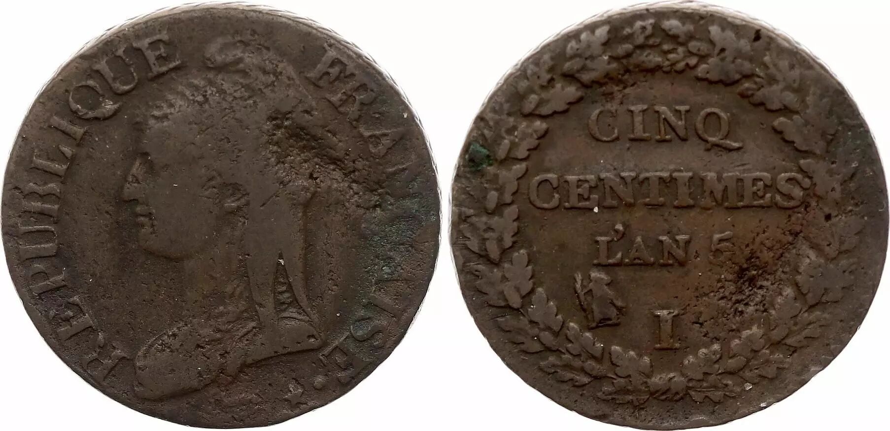 Coin France 5 Centimes Dupre - Liberty head - An 5 I Limoges