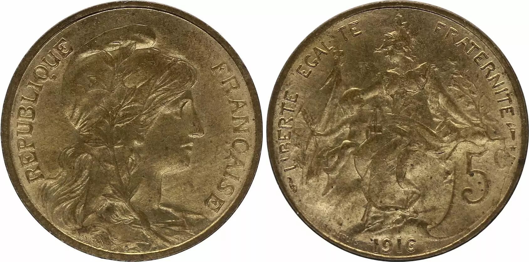 Pièce France 5 Centimes Dupuis - 1916 variété étoile - MADRID