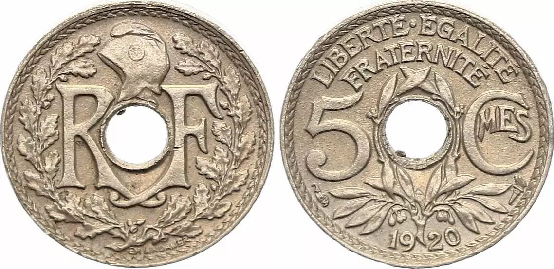 Pièce France 5 Centimes, Lindauer - Petit Module - 1920