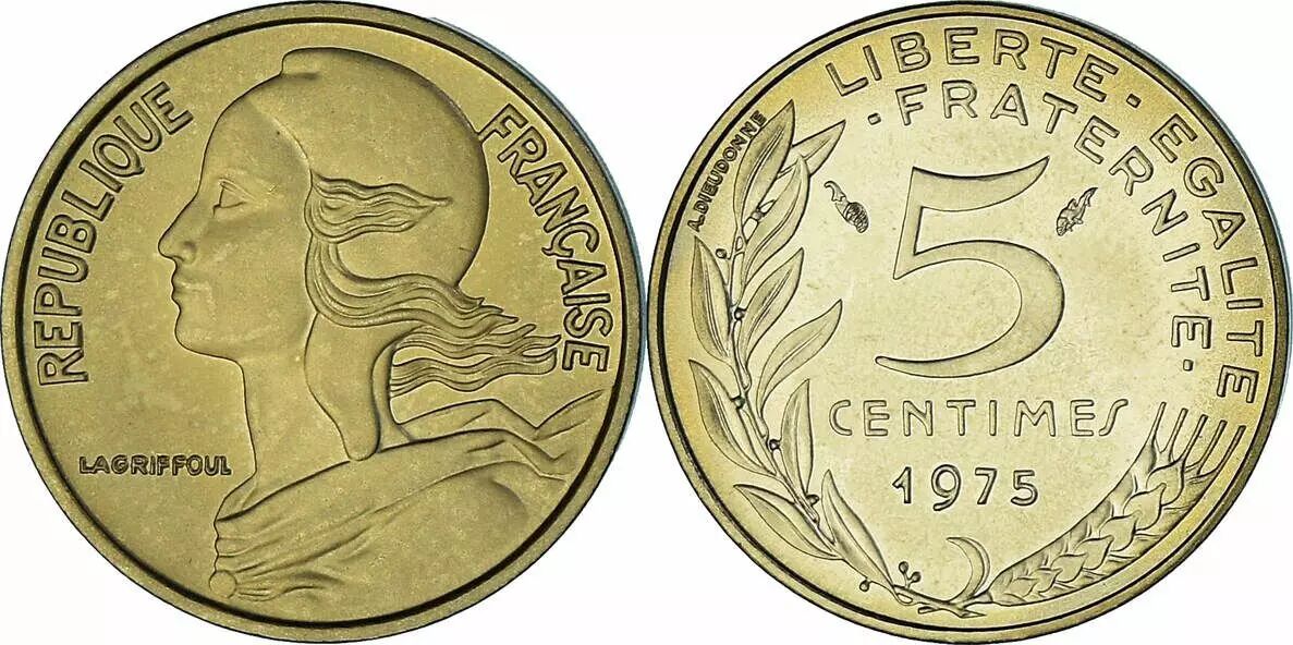 Pièce France 5 Centimes Marianne - 1975 - Issu de coffret FDC