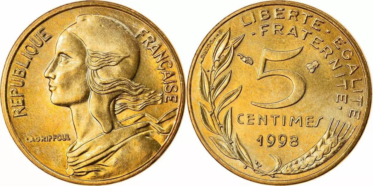 Accueil > Archivage > archivage-Archivage > France 5 Centimes Marianne - 1998 - Frappe BU