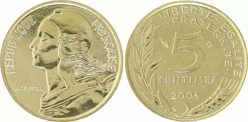 Pièce France 5 Centimes Marianne - 2001 Frappe BU