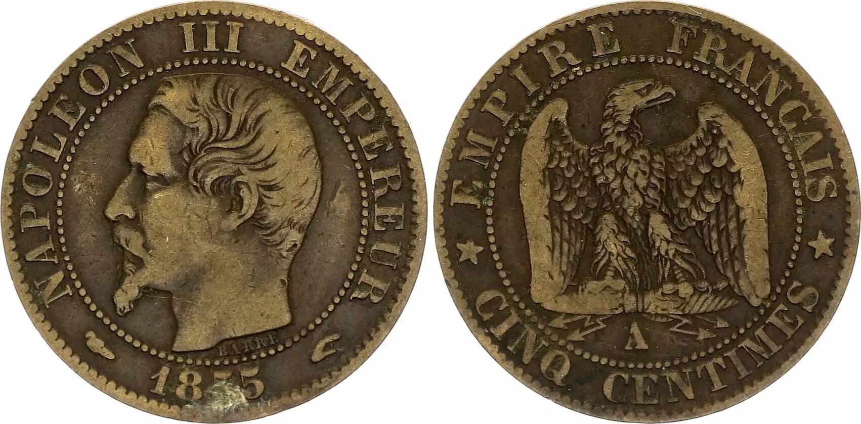 Home > > France 5 Centimes Napoléon III - Nude Head 1855 A Paris