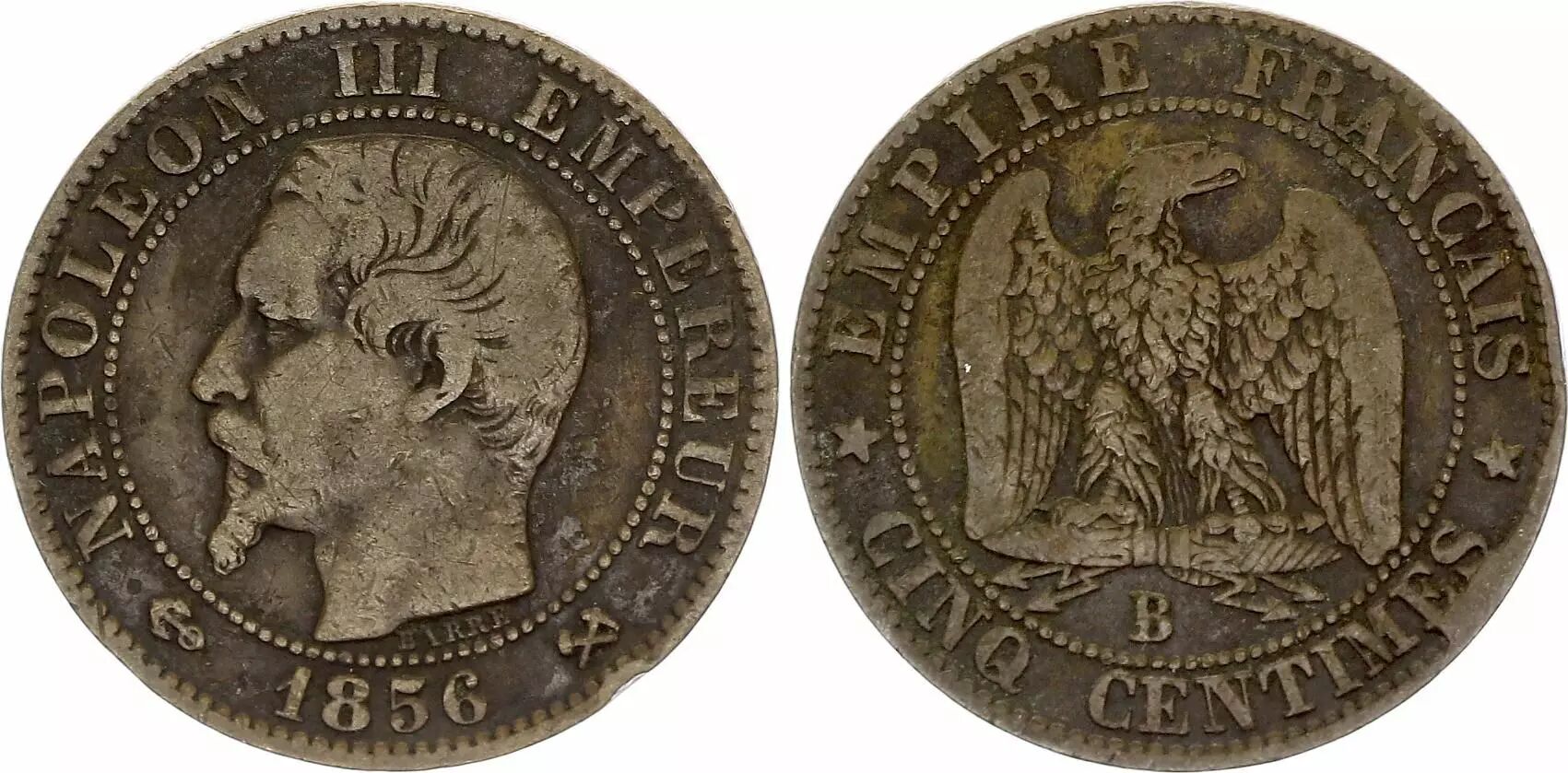 Coin France 5 Centimes Napoléon III - Nude Head - 1856 B Rouen