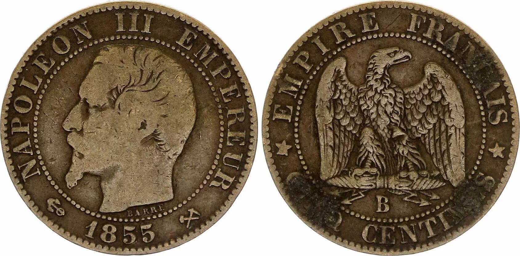Pièce France 5 Centimes Napoléon III - Tête Nue -1855 B Rouen
