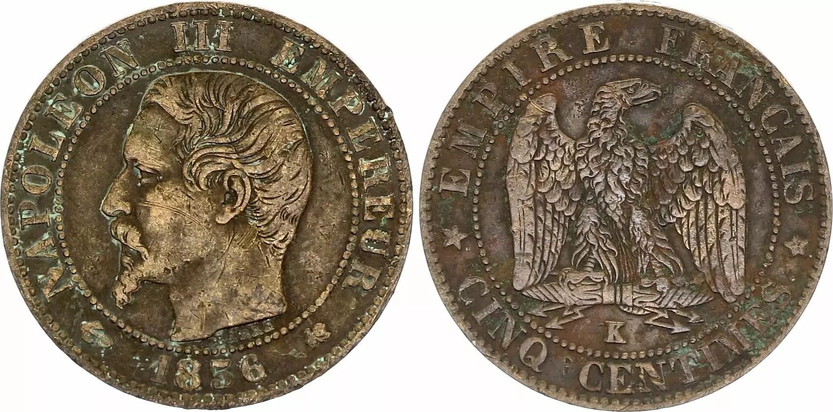 Pièce France 5 Centimes Napoléon III - Tête Nue -1856 K Bordeaux