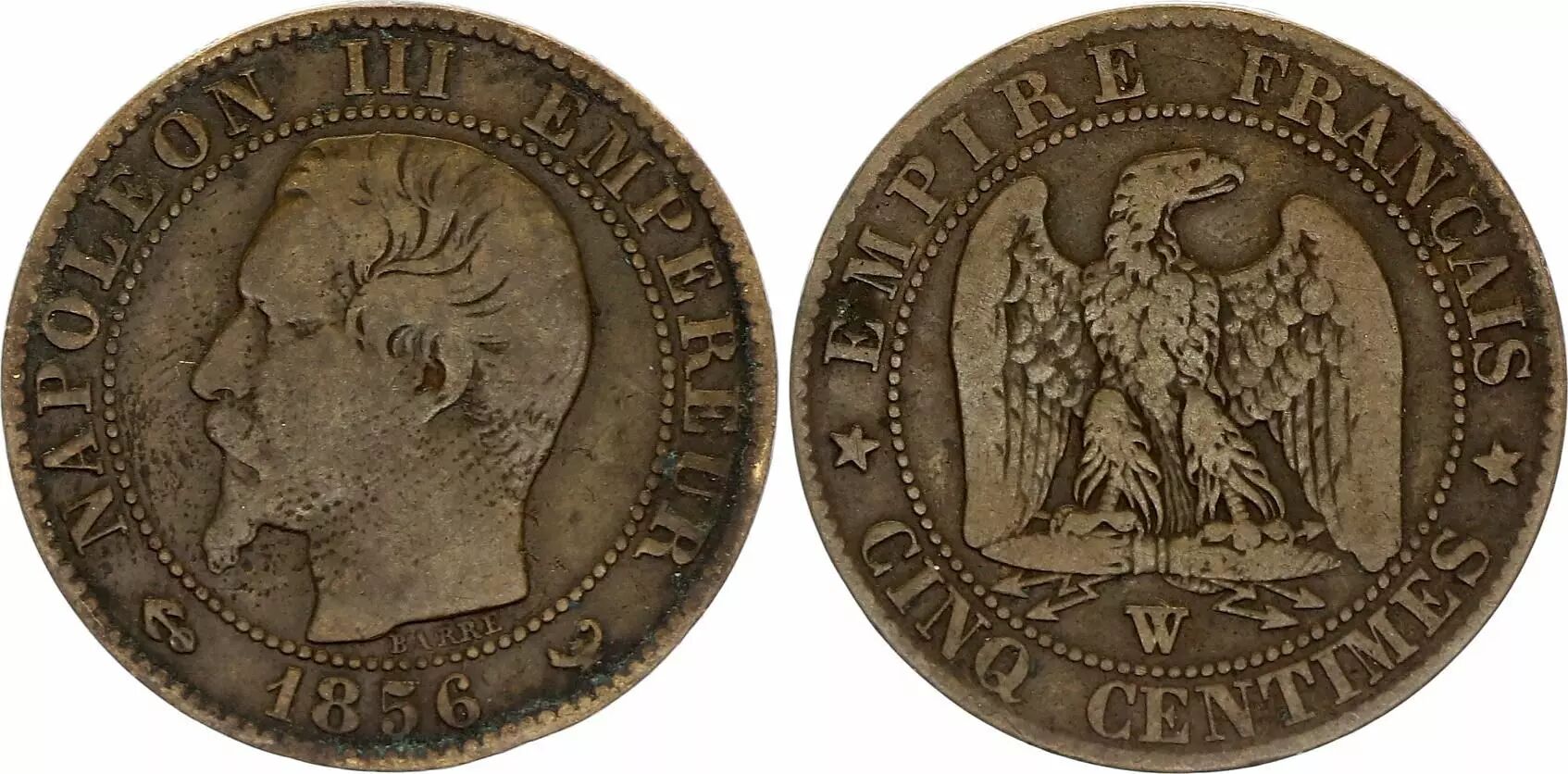 Pièce France 5 Centimes Napoléon III - Tête Nue -1856 W Lille