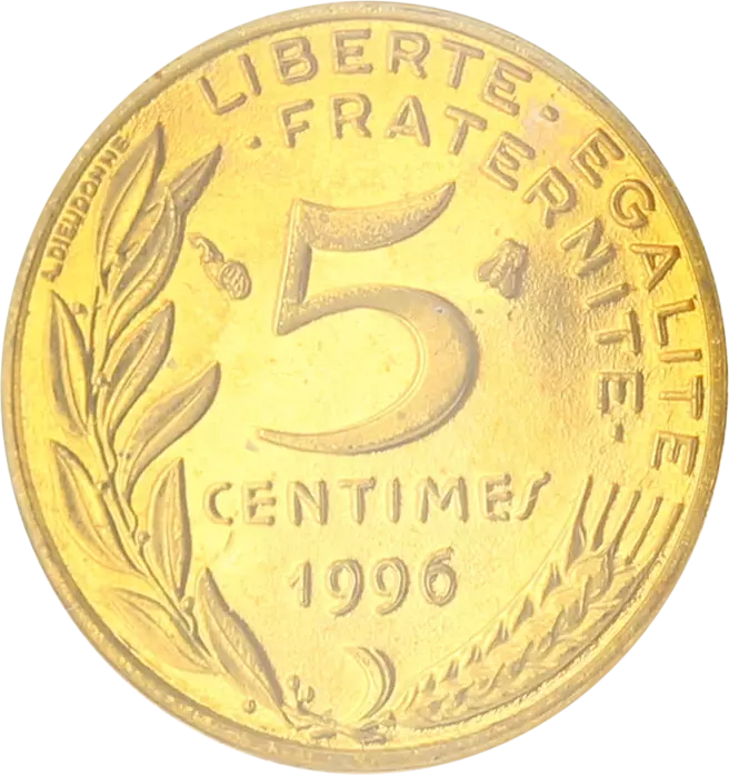 5 Centimes Proof 1996 FranceMarianneBronze-Aluminium - 2 g - Ø 17 mmProof quality - 5319 copiesFrom Proof box - delivered in capsule