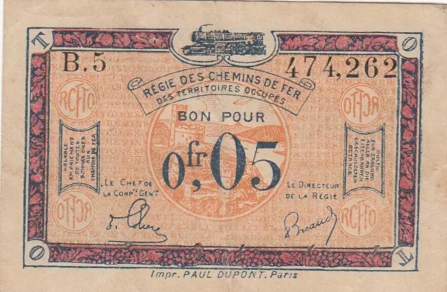 Banknote France 5 Centimes Regie des chemins de Fer - 1923 - Serial B.5 - VF - R.1
