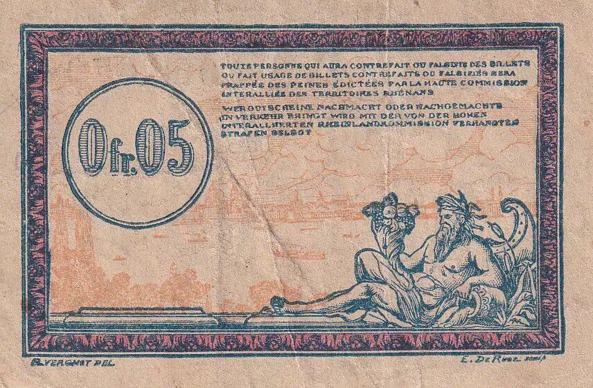 Banknote France 5 Centimes Regie des chemins de Fer - 1923 - Serial D.1 - F to VF - R.1