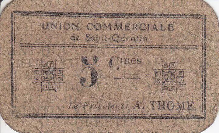 Billet France 5 Centimes Saint-Quentin Union commerciale