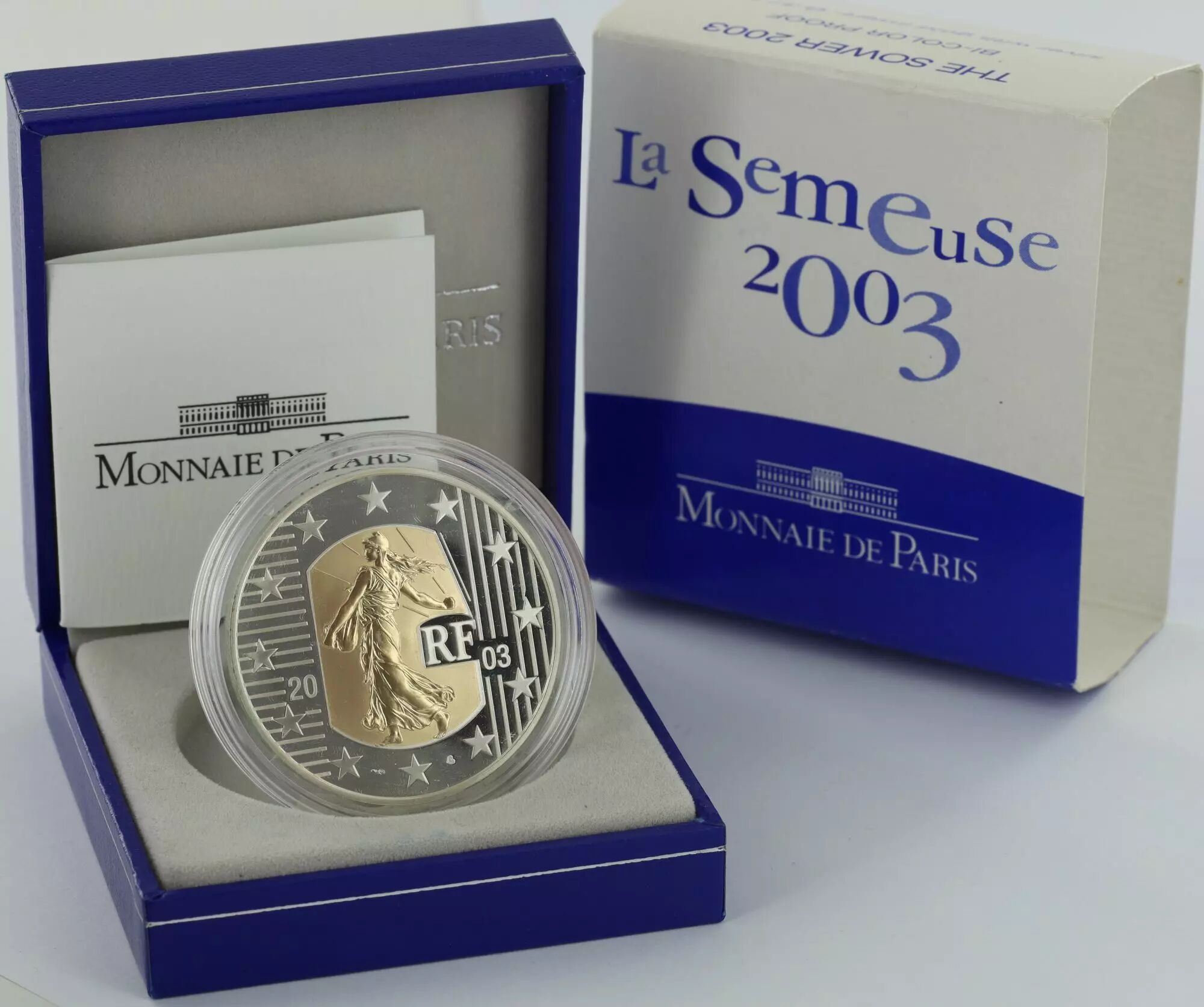 With box, certificate and damaged scabbardBimetallic: 750? gold center and 900? silver ring.