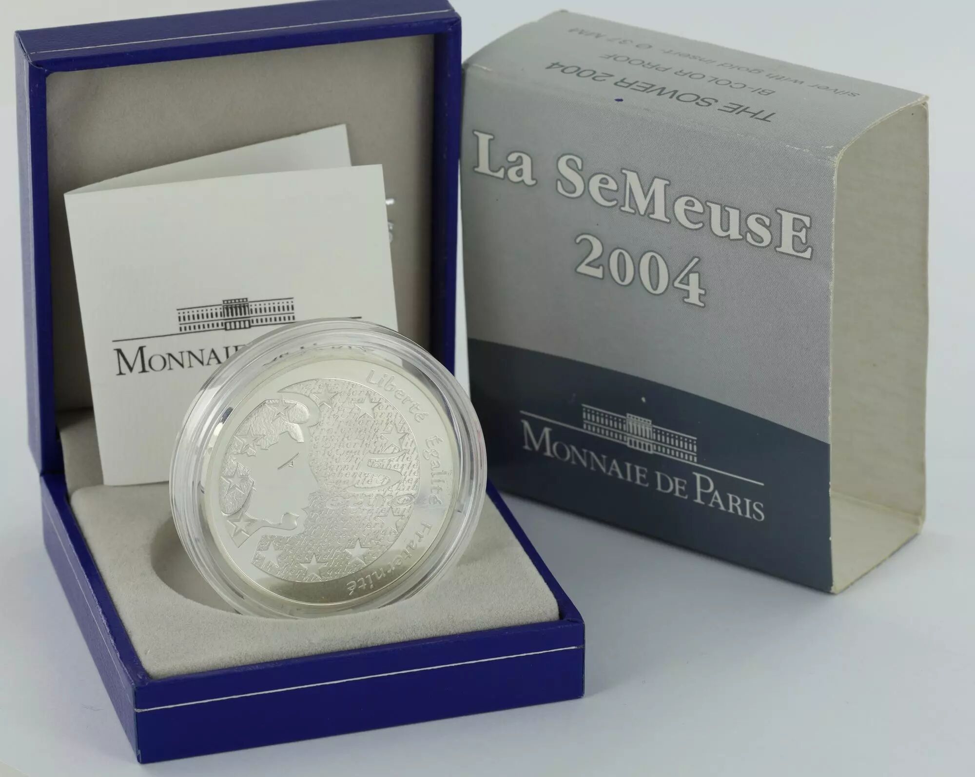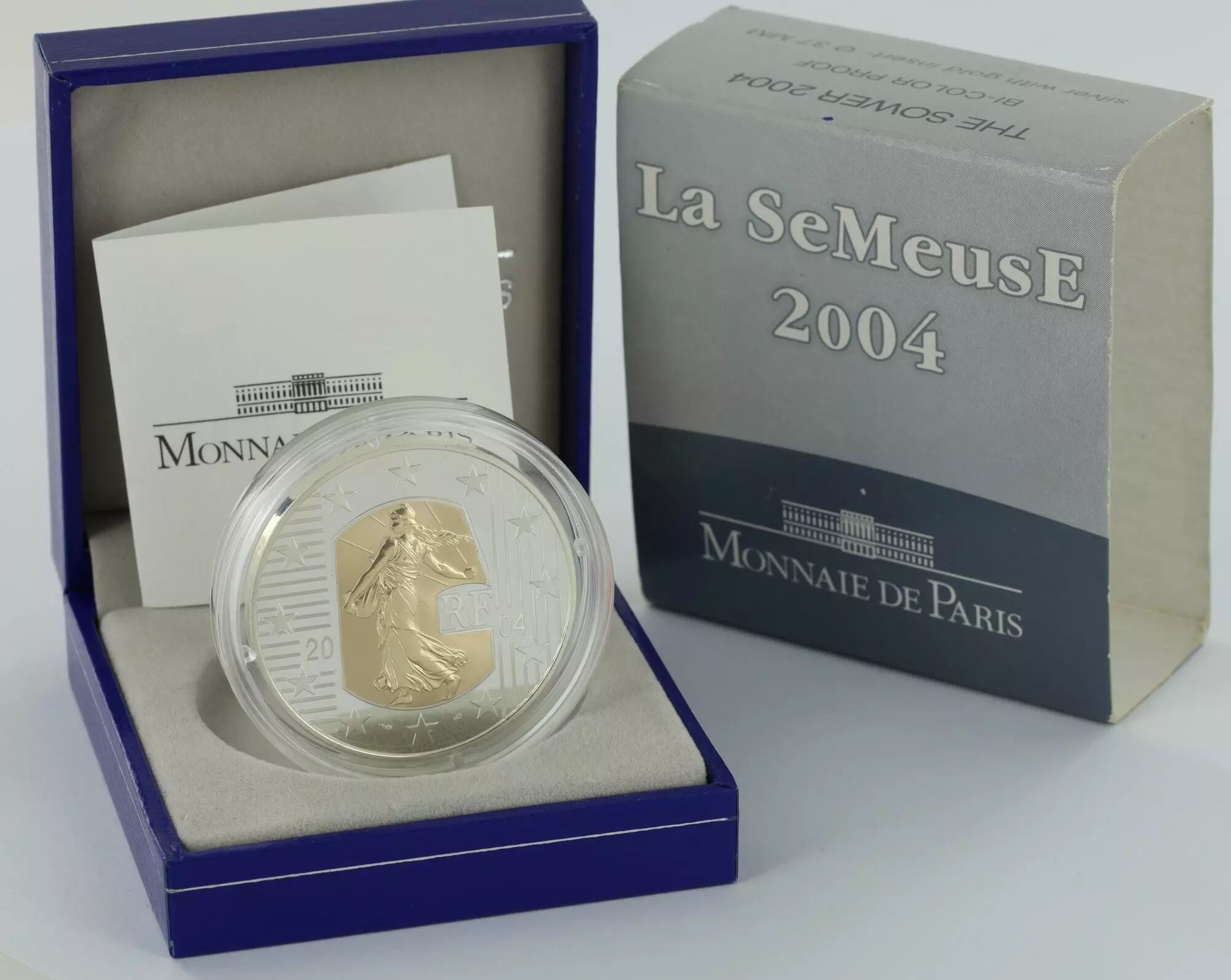 With box, certificate and damaged scabbardBimetallic: 750? gold center and 900? silver ring.