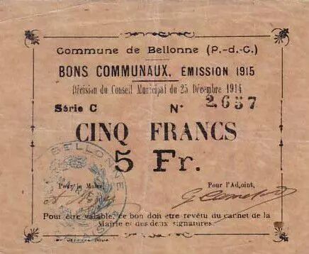 Les Billets des Communes et des Villes (Pir. 62.106)
