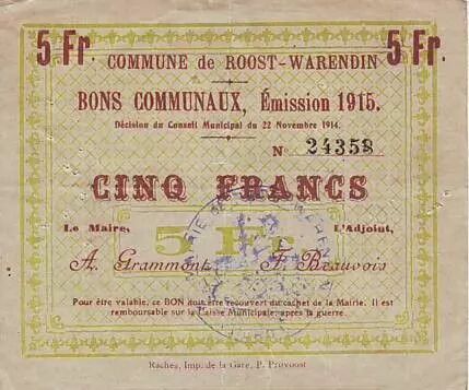 Billet France 5 F Roost-Warendin