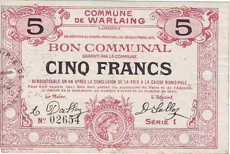 Les Billets des Communes et des Villes (Pir. 59.2738)