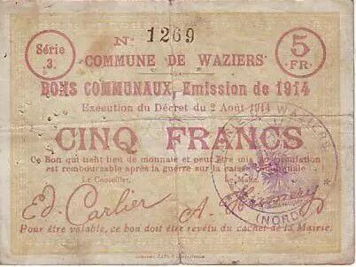 Banknote France 5 F Waziers