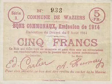 Les Billets des Communes et des Villes (Pir. 59.2786)