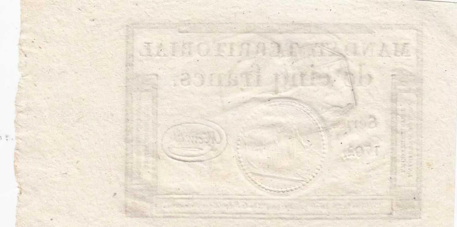 Banknote France 5 Francs 28 Ventose An IV (18.3.1796) - Black seal - UNC