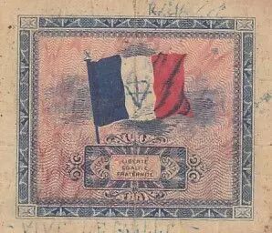 Folds, stains, writing on the banknote (Vive De Gaulle)