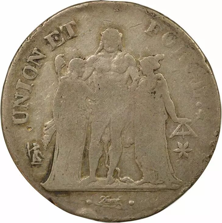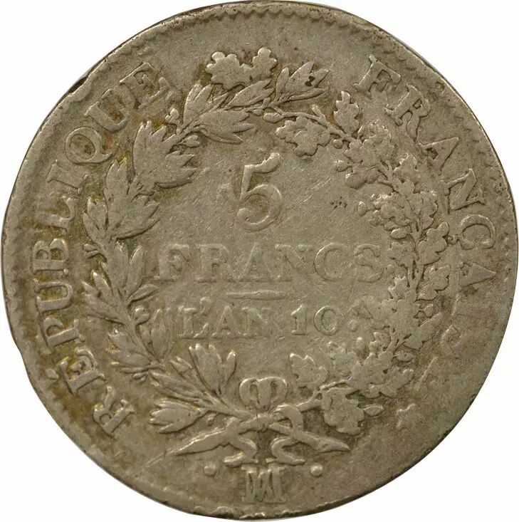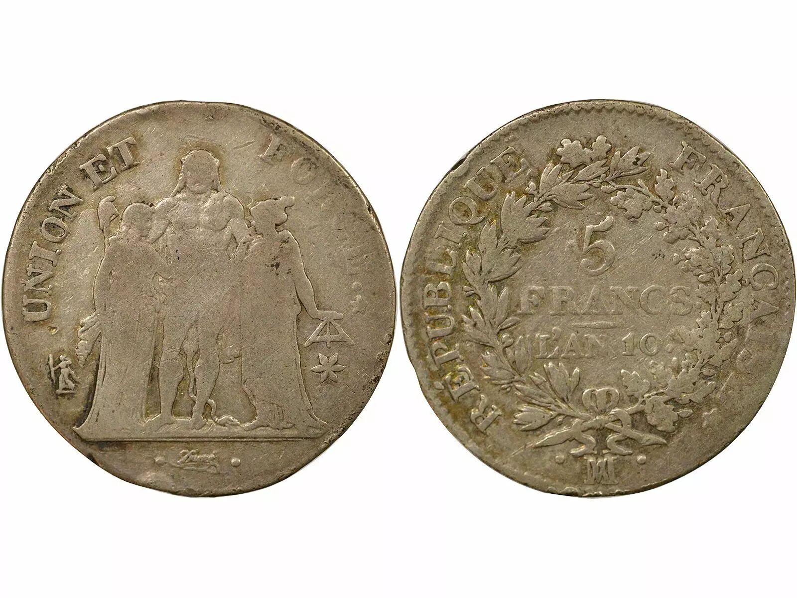Pièce France 5 Francs Argent, Union & Force - An 10 MA Marseille