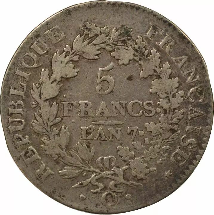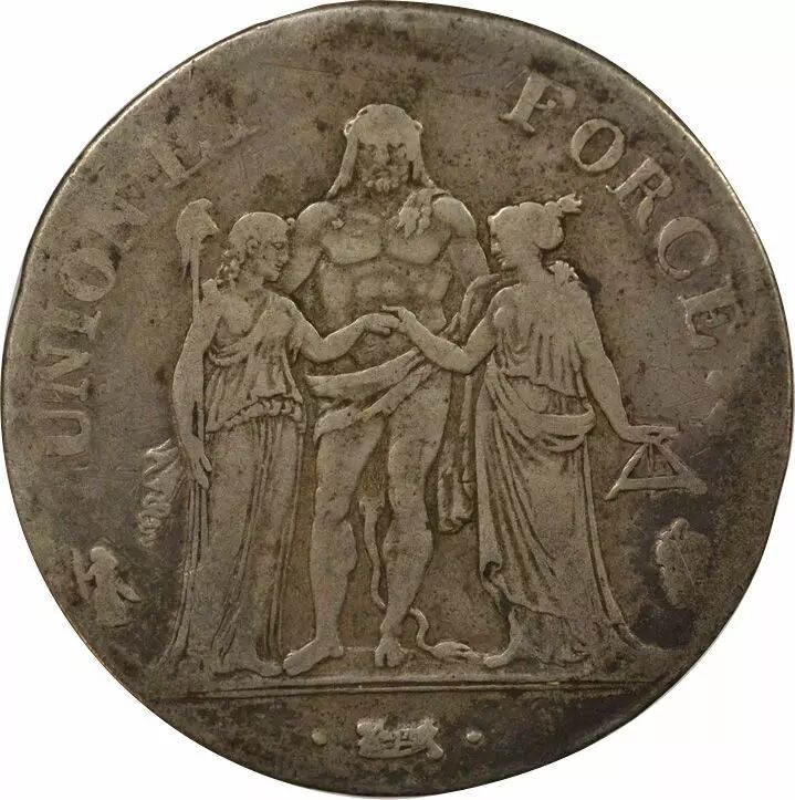 Pièce France 5 Francs Argent, Union & Force - An 7 Q Perpignan
