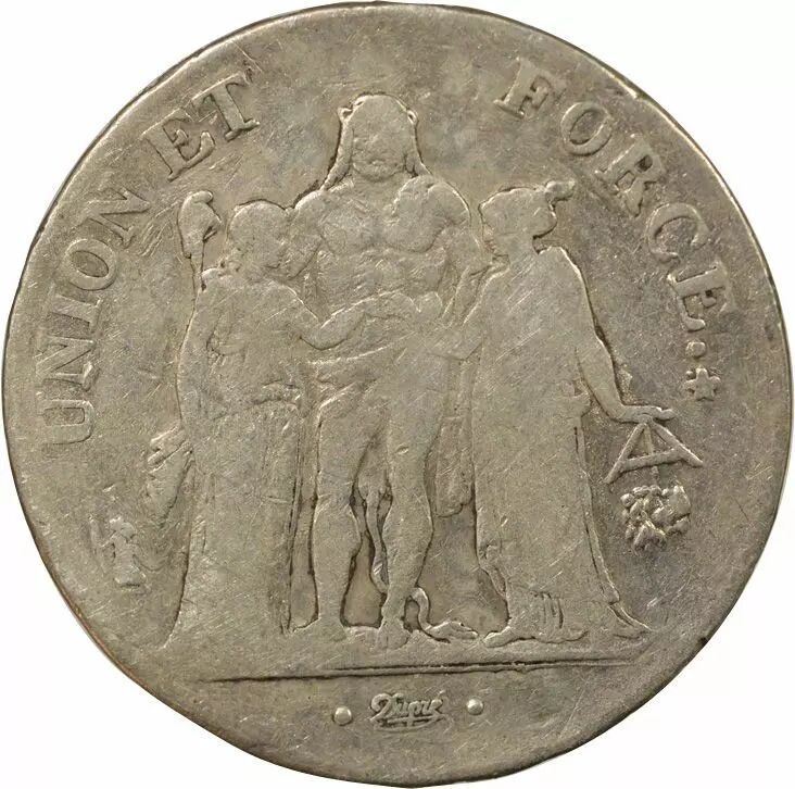 Pièce France 5 Francs Argent, Union & Force - An 9 L Bayonne