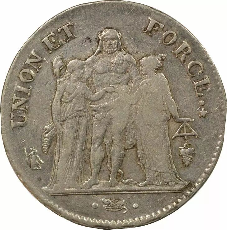 Accueil > Monnaies françaises (470 à 2002) > Monnaies Modernes (1789 à 2002) > 5 francs > France 5 Francs Argent, Union & Force - An 9 Q Perpignan