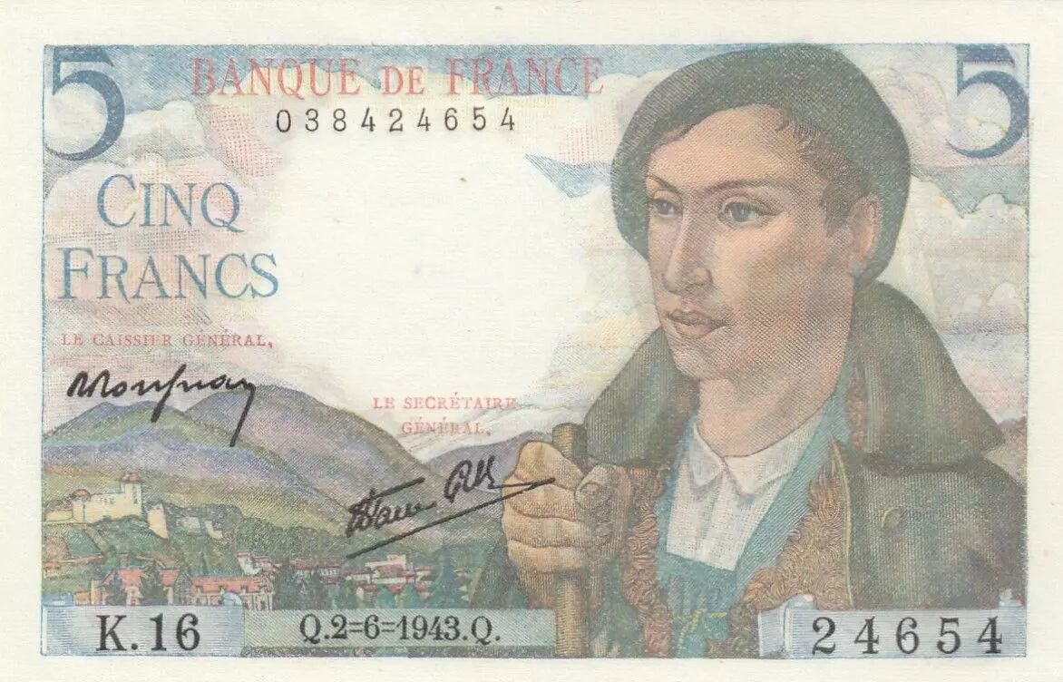 Billet France 5 Francs - Berger - 02-06-1943 - Série K.16
