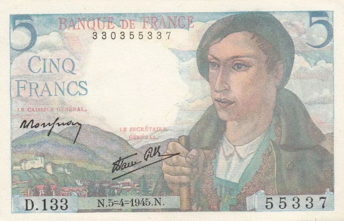 Billet France 5 Francs Berger - 05-04-1945 - Série D.133