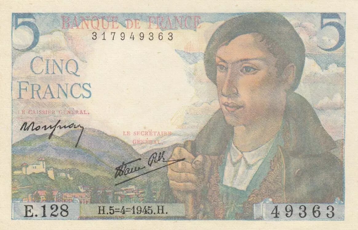 Billet France 5 Francs - Berger - 05-04-1945 - Série E.128