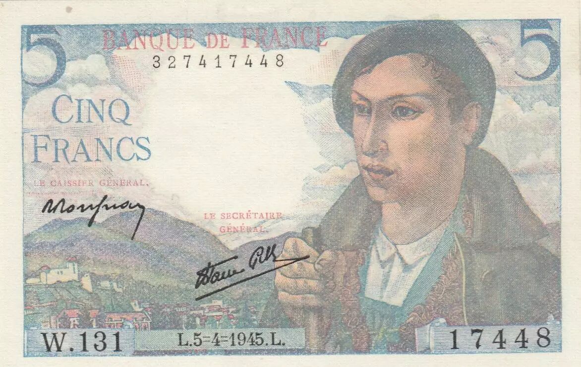 Billet France 5 Francs - Berger - 05-04-1945 - Série W.131