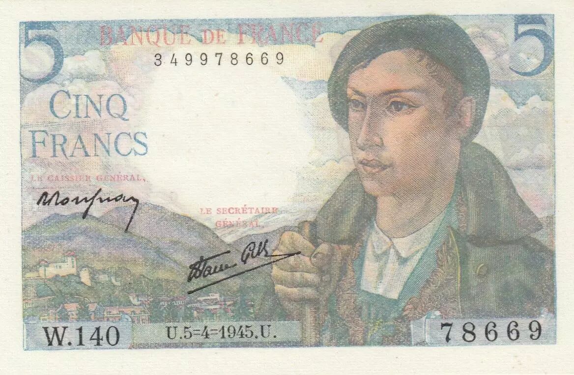 Billet France 5 Francs - Berger - 05-04-1945 - Série W.140