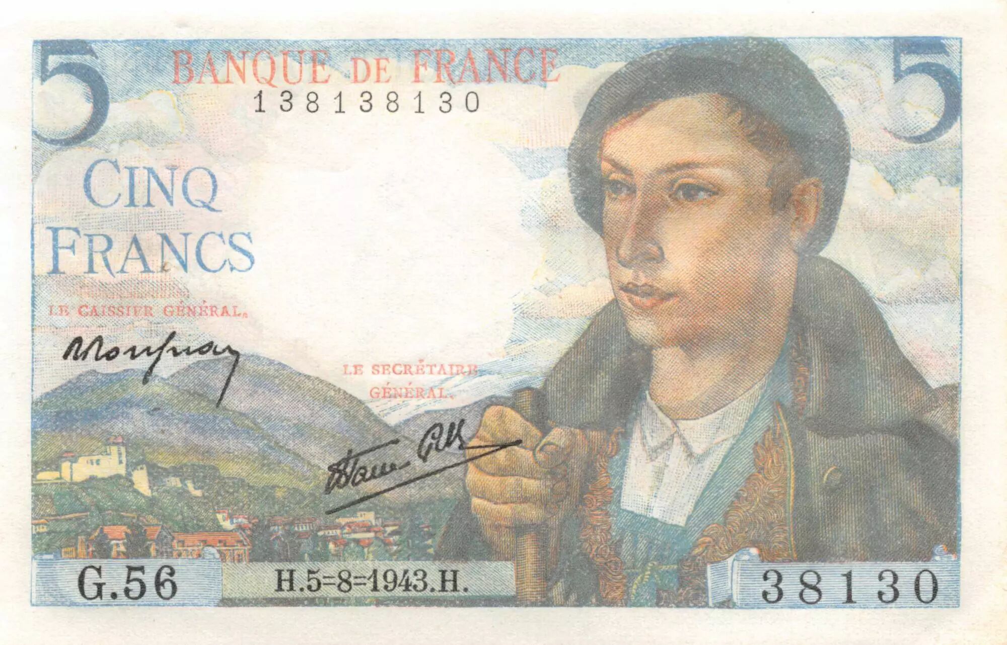Accueil > Archivage > France 5 Francs Berger - 05-08-1943 Série G.56 - SPL