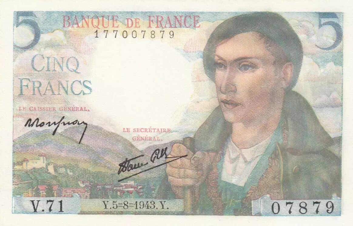 Billet France 5 Francs Berger - 05-08-1943 Série V.71